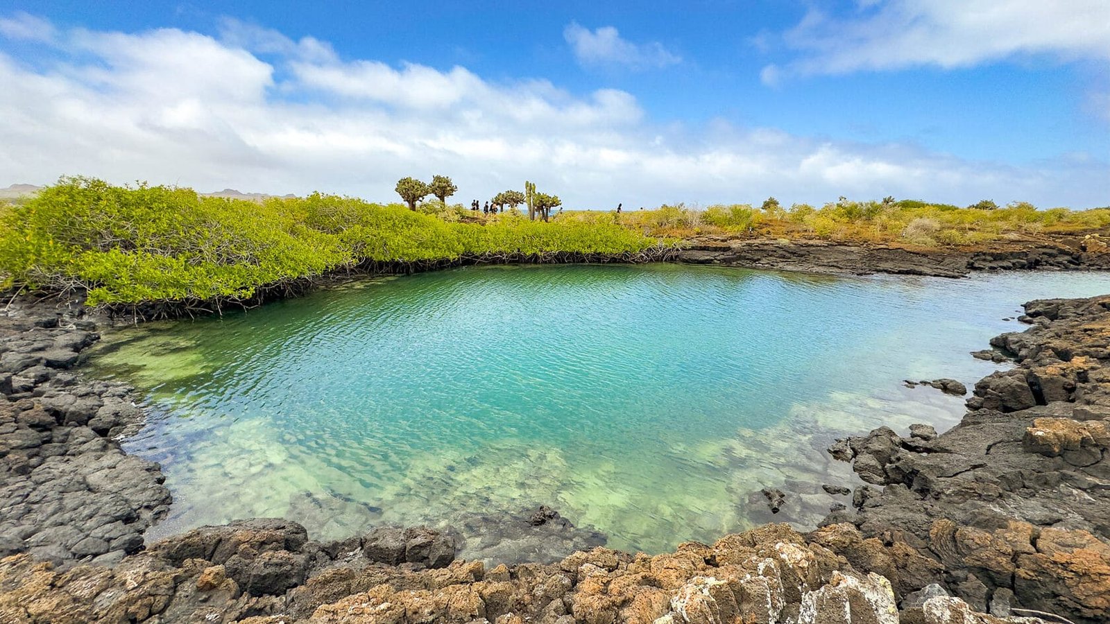 Iniziamo la nostra giornata con una passeggiata fino a Punta Tijeretas. Questo percorso panoramico vi porterà attraverso un sentiero immerso nella vegetazione tipica delle Galapagos, con le viste spettacolari sull’oceano. Una volta arrivati a Punta Tijeretas, possiamo ammirare il suggestivo paesaggio costiero e, con un po’ di fortuna, avvistare le fregate che danno il nome al luogo. Le acque cristalline sono ideali per fare snorkeling e osservare la vibrante vita marina.