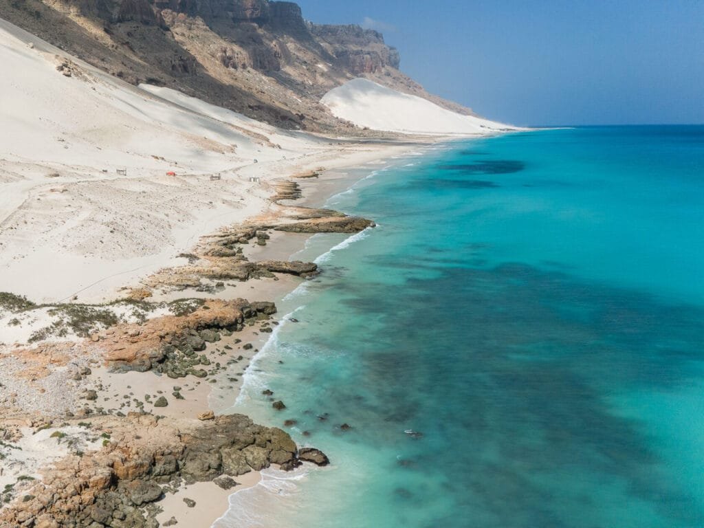 Socotra, con le sue spiagge di sabbia bianca baciata dal sole e le acque cristalline che si mescolano tra le sfumature dell’azzurro e del verde, incanta gli occhi e nutre l’anima.