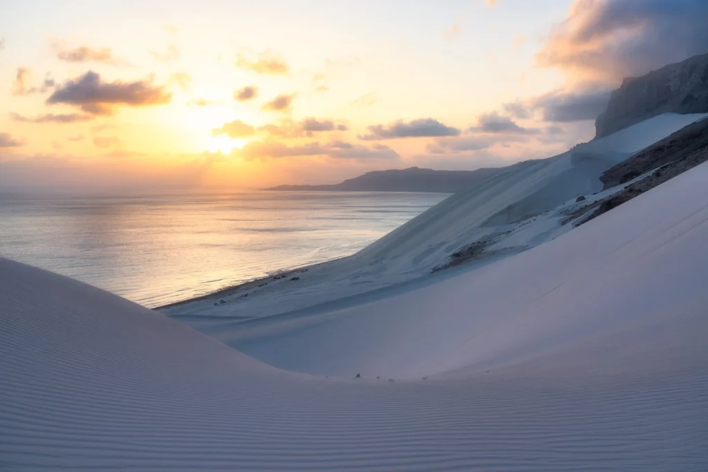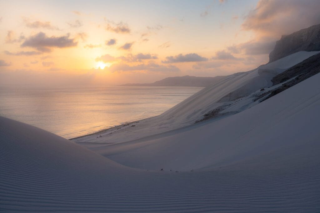 Dopo essersi svegliati prima dell’alba accanto alla spiaggia, possiamo scegliere tra due attività mattutine: un trekking piuttosto ripido fino alla grotta di Hoq (4 ore di escursione). Questo è uno dei luoghi più importanti dell’isola. OPPURE fare l’alba sulla duna.